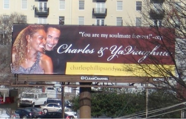 The billboards, reportedly placed in New York, Atlanta and San Francisco, point people to a website that catalogs in meticulous photographic and video detail a long romance between Phillips and Wilkins dating back to at least 2001. As of Friday morning, the web site was receiving a "service unavailable" error -- it's unclear if it has been taken down or was overwhelmed by traffic.
