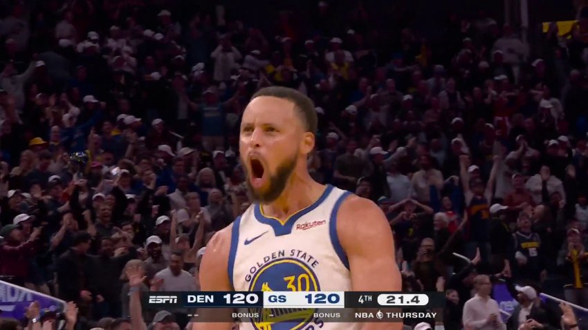 Warriors star Stephen Curry lights things up in the final stages of the game scoring 42 points to counter Aaron Gordon’s 50-point Nuggets effort to help Golden State get the victory.
